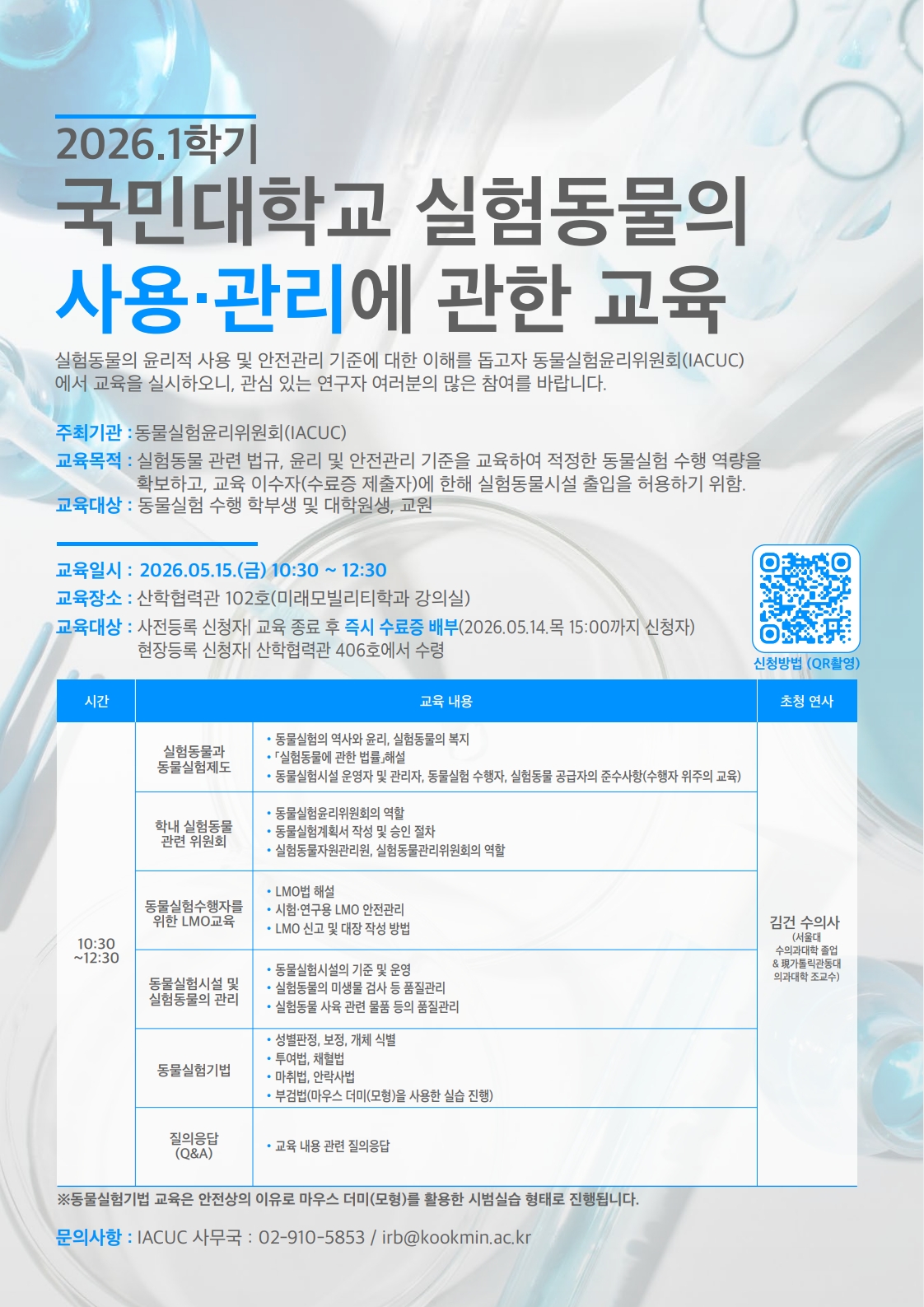 2026학년도 1학기 동물실험윤리(IACUC) 교육 안내